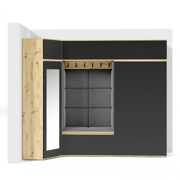 Předsíňová stěna AMI 39 Šedá IV Dub artisan + Černá