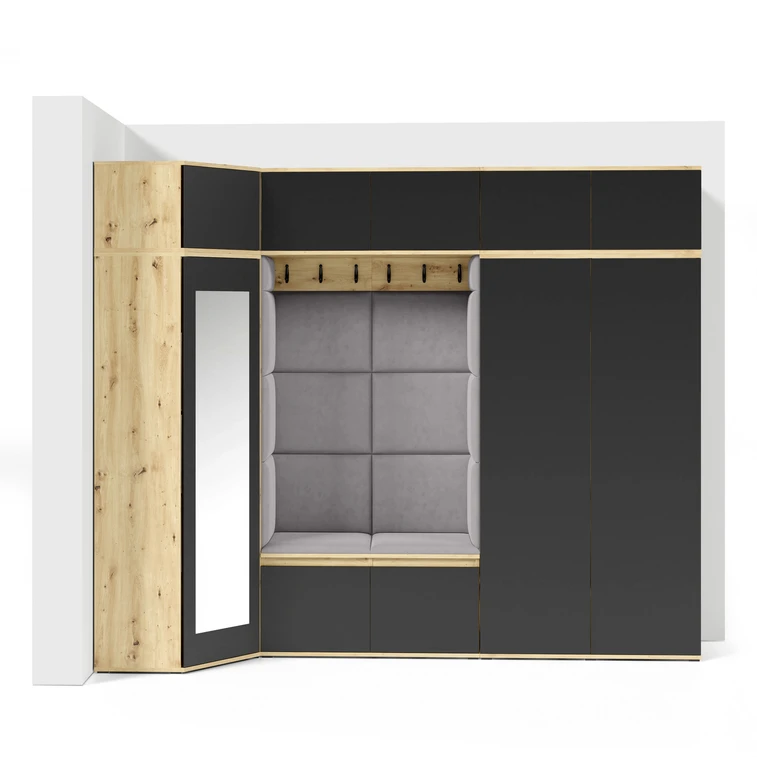 Předsíňová stěna AMI 39 Světle šedá II Dub artisan + Černá