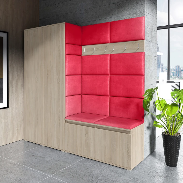 Předsíňová stěna AMI 8 Červená Dub sonoma Bez zrcadla