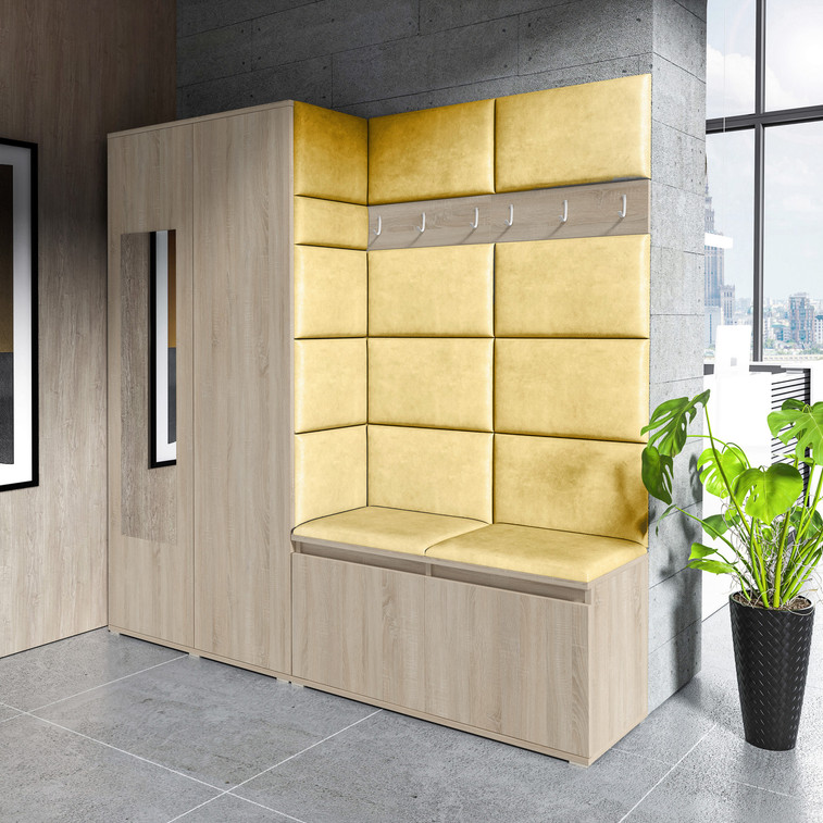 Předsíňová stěna AMI 8 Žlutá Dub sonoma Se zrcadlem