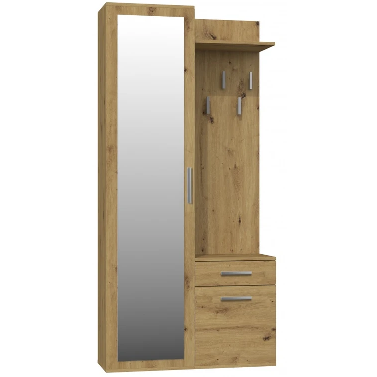 Věšák: Obsahuje pět věšáků na vaše oblečení. Hned vedle věšáku naleznete velké zrcadlo. Kde můžete zkontrolovat svůj finální look, před odchodem z domu. Za zrcadlem je praktická skříň, do které se vám vejde oblečení i další páry bot.