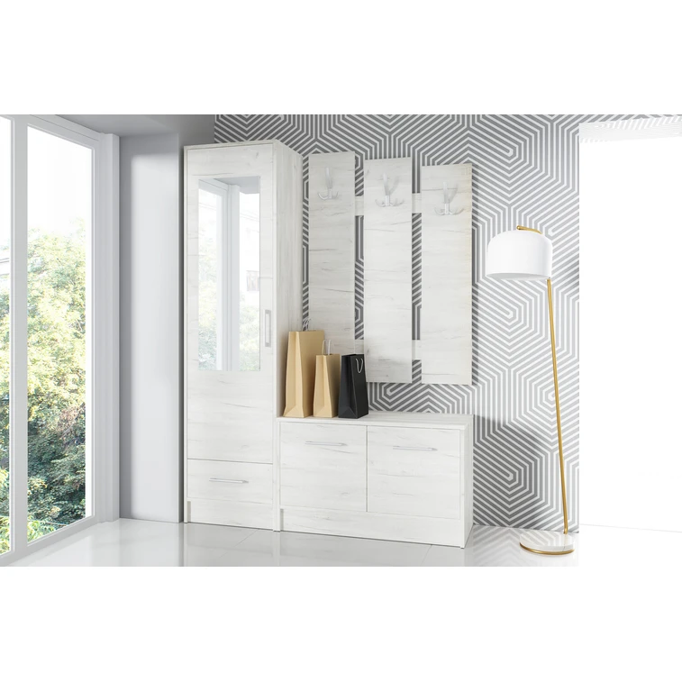 Předsíňová stěna MAXI je moderní a praktický prvek do vstupních prostor vašeho domu. Skládá se z několika částí. Tato předsíňová stěna nabízí dostatek úložného prostoru pro vaše věci. Díky svému nadčasového vzhledu, promění vhled každé předsíně.
