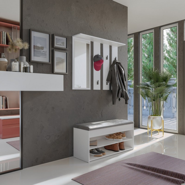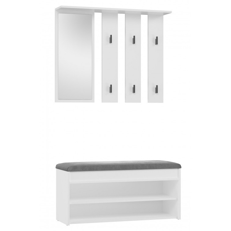Předsíňová stěna PARMA 2P je moderní a praktický prvek do vstupních prostor vašeho domu. Skládá se z několika částí. Tato předsíňová stěna nabízí dostatek úložného prostoru pro vaše věci. Díky svému nadčasového vzhledu, promění vhled každé předsíně. Botník se sedákem je uzpůsobený pro šest, až osm párů bot. Vždy záleží na velikosti obuvi.