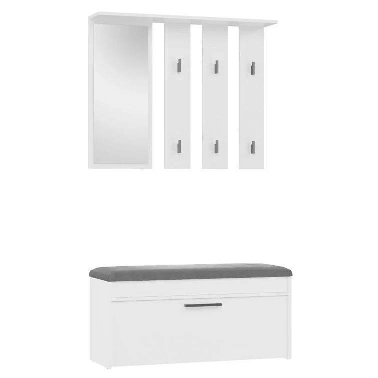 Předsíňová stěna PARMA je moderní a praktický prvek do vstupních prostor vašeho domu. Skládá se z několika částí. Tato předsíňová stěna nabízí dostatek úložného prostoru pro vaše věci. Díky svému nadčasového vzhledu, promění vhled každé předsíně. Botník se sedákem je uzpůsobený pro šest, až osm párů bot. Vždy záleží na velikosti obuvi.