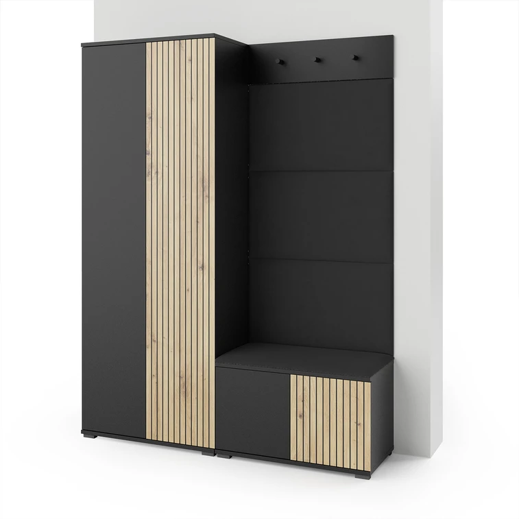Předsíňová stěna se skládá z několika částí: šatní skříň, věšák, botník