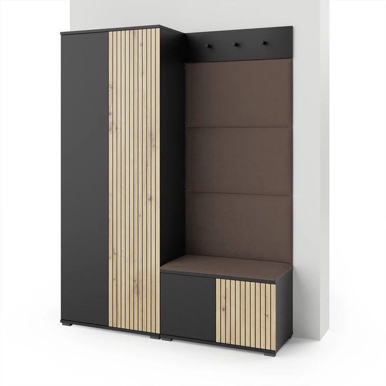 Předsíňová stěna se skládá z několika částí: šatní skříň, věšák, botník
