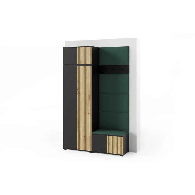 Předsíňová stěna se skládá z několika částí: šatní skříň, věšák, botník