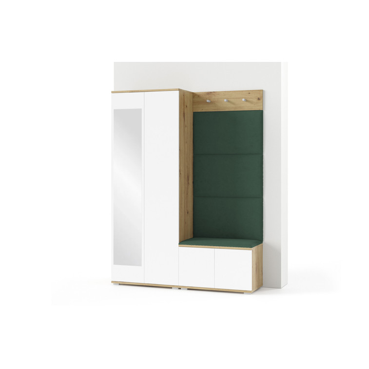 Je to praktický prvek do vstupních prostor vašeho domu. Předsíňová stěna obsahuje čalouněné panely, které se montují přímo na stěnu za pomoci lepidla. Potah panelů je tkanina Trinity. Předsíňová stěna se skládá z několika částí. Tato sada obsahuje: 1x šatní skříň, 1x botník, věšák, 4 panely.