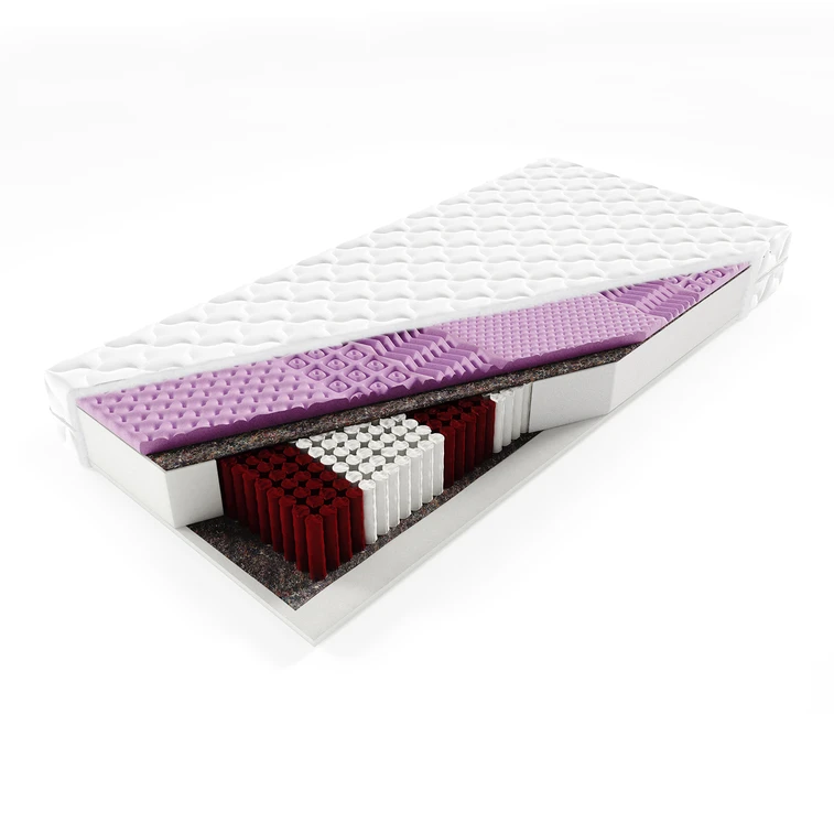 Pružiny: Každá pružina je umístěna v samostatném sáčku z tkaniny. Matrace se tak lépe přizpůsobí tělesné hmotnosti. Pružiny jsou vyrobeny z vysoce kvalitních certifikovaných drátů.