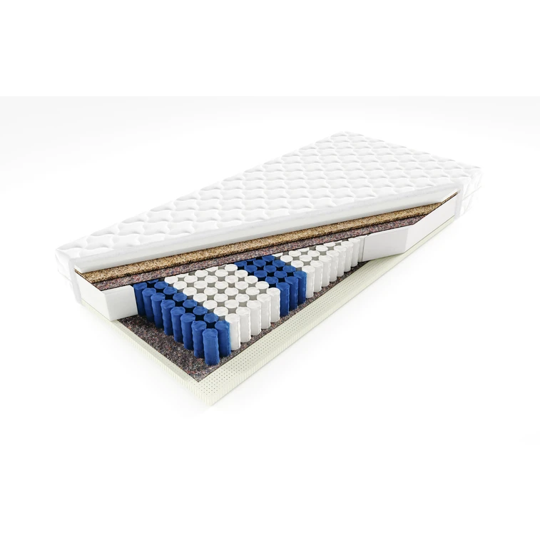 Velmi kvalitní 7 zónová matrace. Na obou stranách pokrytá pěnou. Každá pružina je umístěna v samostatné kapse z textilu. Kokosová vrstva, zpevňuje matraci a zabraňuje jejímu zborcení.