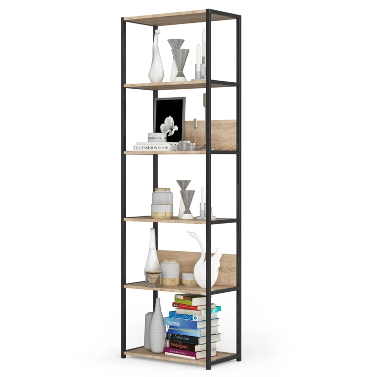 Kovový regál je praktický a moderní. Bude se dobře vyjímat v obývacím pokoji, ale i v kanceláři. Police jsou vyrobeny z laminované desky. Je vyroben z velmi odolného materiálu, který se vyznačuje vysokou odolností proti oděru.