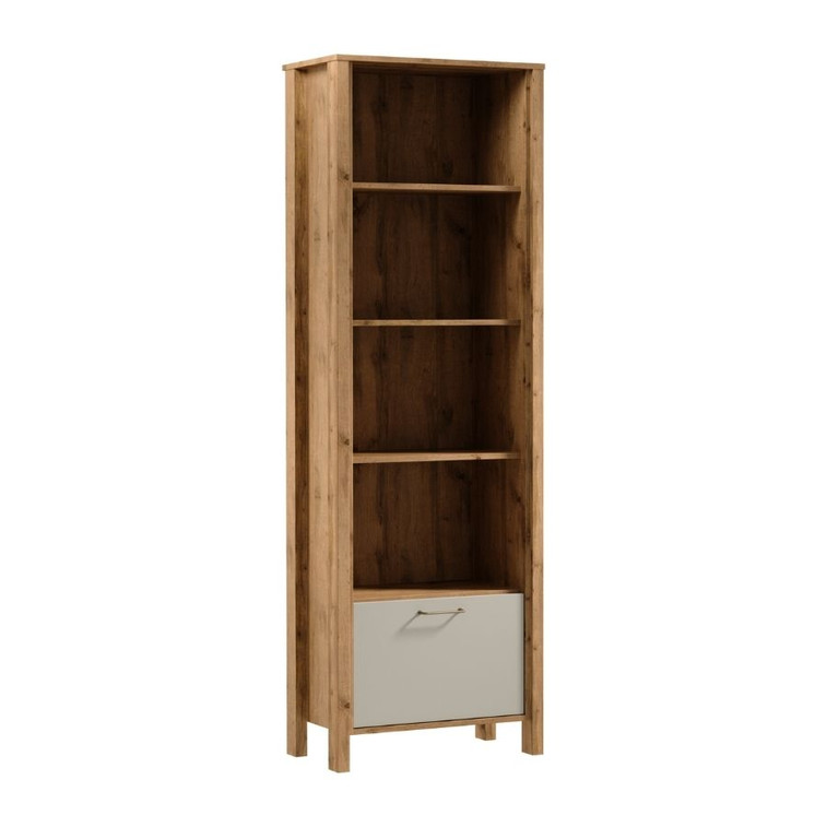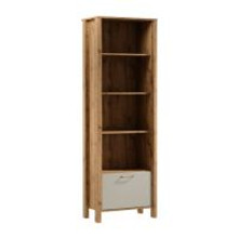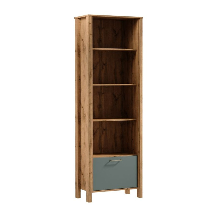 Jednoduchý a moderní regál, který vás okouzlí svou jednoduchostí a elegancí. Přírodní barvy teplého dekoru dub Wotan na korpusu nábytku v kombinaci s jednobarevnou béžovou nebo zelenou na výběr dělají kolekci přirozeně krásnou. Je vyroben z kvalitního lamina, které se vyznačuje vysokou odolností proti mechanickému poškození.