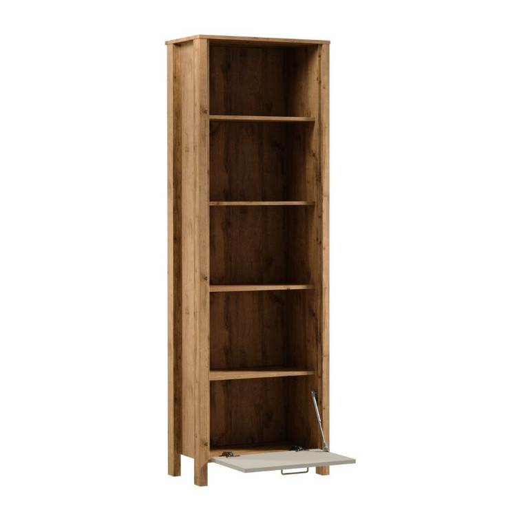 Jednoduchý a moderní regál, který vás okouzlí svou jednoduchostí a elegancí. Přírodní barvy teplého dekoru dub Wotan na korpusu nábytku v kombinaci s jednobarevnou béžovou nebo zelenou na výběr dělají kolekci přirozeně krásnou. Je vyroben z kvalitního lamina, které se vyznačuje vysokou odolností proti mechanickému poškození.