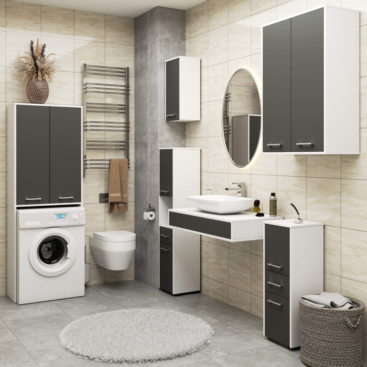 Jde o ideální způsob, jak využít prostor nad pračkou, který je většinou nevyužitý. Díky optimálním rozměrům je tento regál také skvělým řešením pro malé koupelny. Do skříně můžeme schovat předměty jako prací prostředky nebo hygienické prostředky. Tyto police jsou určeny pro uložení osobní kosmetiky nebo ručníků. Laminátová deska, ze které je tato skříň vyrobena, je vyrobena z vysoce kvalitního materiálu.