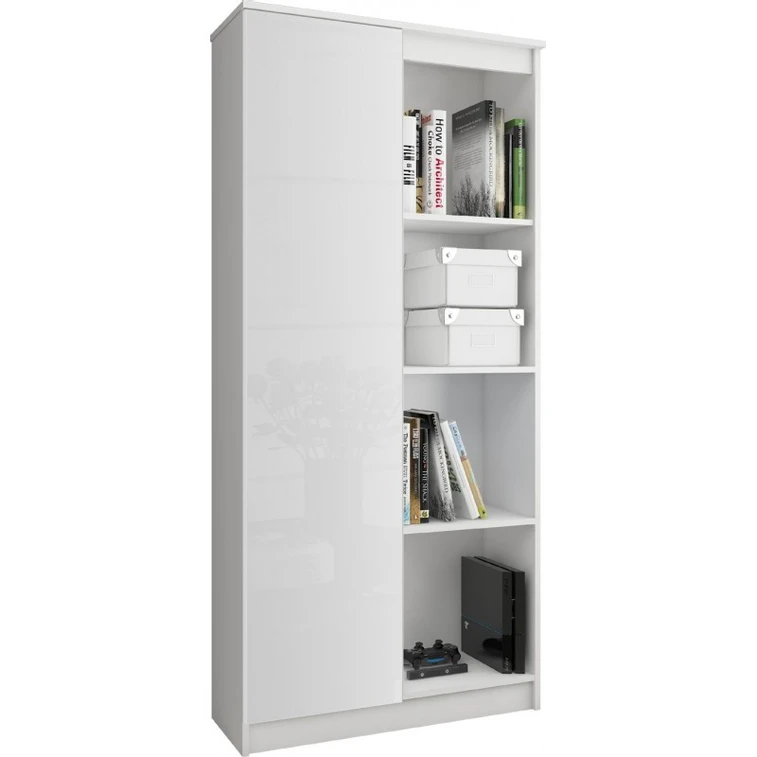 Regál R 80cm CLP 1 dvířka 6 poliček bílý lesk.