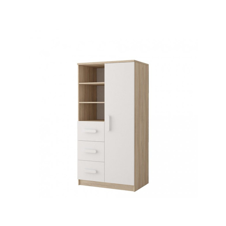 Regál Smyk splňuje představu o moderním pokoji pro dítě. Nabízí dostatek úložného prostoru. Regál je složen z policové skříňky se třemi policemi, dvěma otevřenými policemi a třemi šuplíky. Tato sestava je určena již pro nejmenší děti a díky nadčasovému designu Vám tento regál bude sloužit řadu let. Široký výběr barevných variant úchytů se přizpůsobí jak chlapci, tak i dívce.