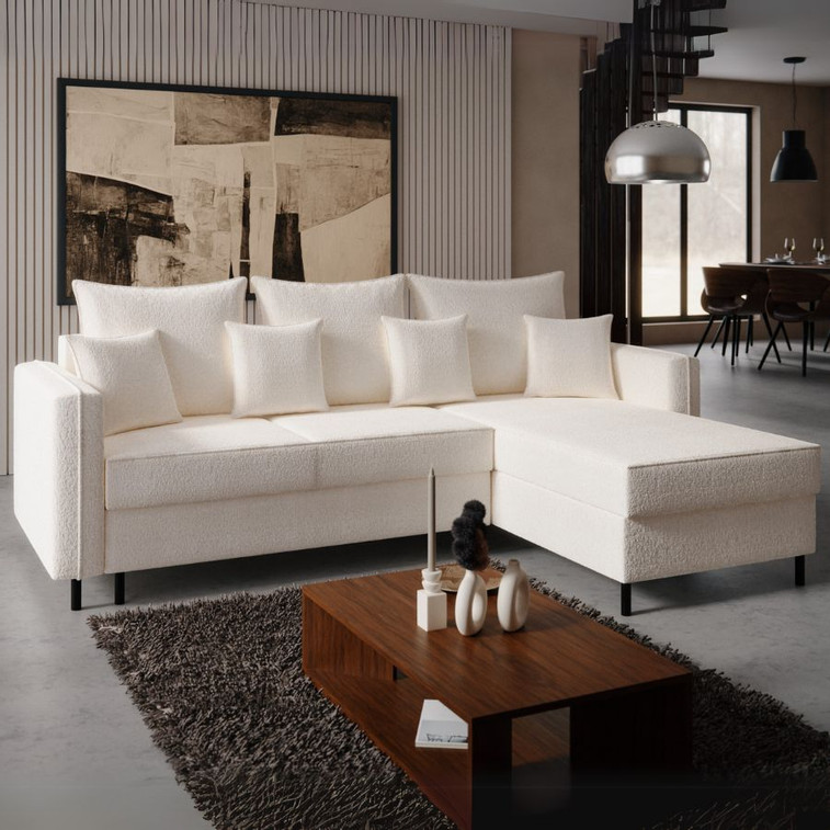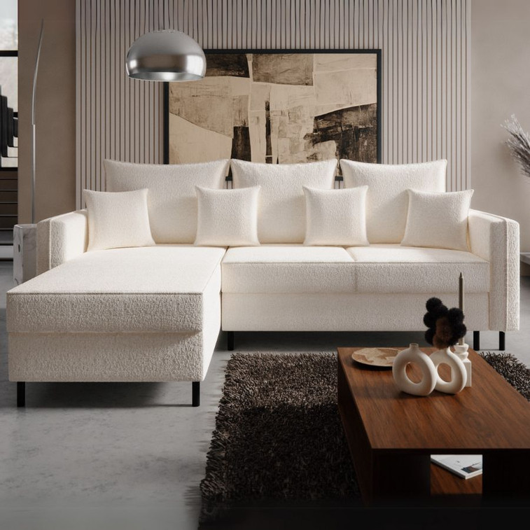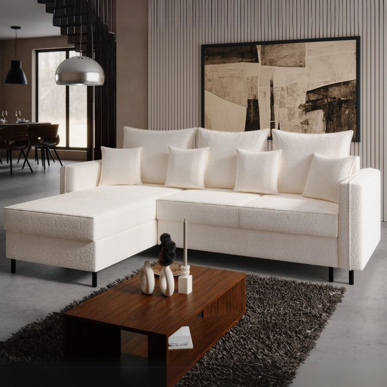 Pevná konstrukce ze dřeva a OSB desky. Potah z kvalitní látky Catch me. Při montáži možnost zvolení levé nebo pravé strany. Moderní design vhodný do všech současných interiérů.