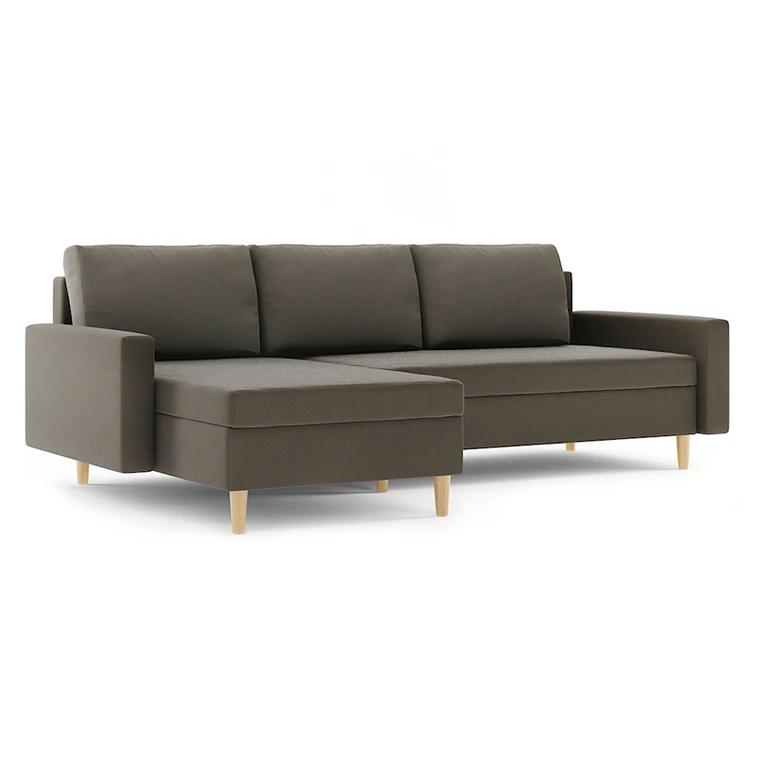 Rohová rozkládací sedací souprava BELLIS. Pevná konstrukce ze dřeva a OSB desky. Potah z kvalitní látky MONOLITH v moderních barevných odstínech. Možnost zvolení levé, nebo pravé varianty. Snadné rozkládání pohovky na lůžkovou podobu. Moderní skandinávský design vhodný do všech současných interiérů. Sedací souprava má 2 úložné prostory pod sedáky.