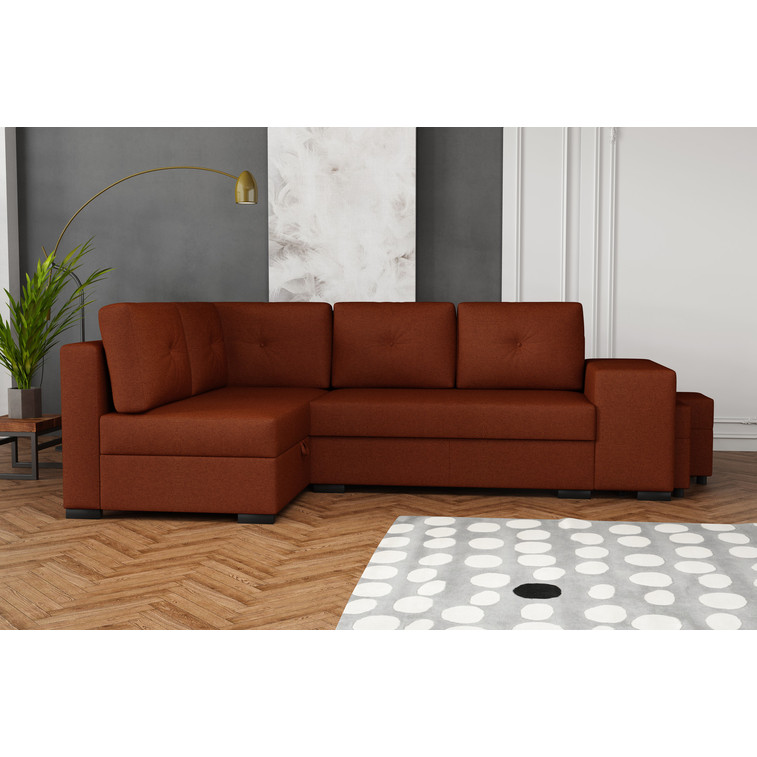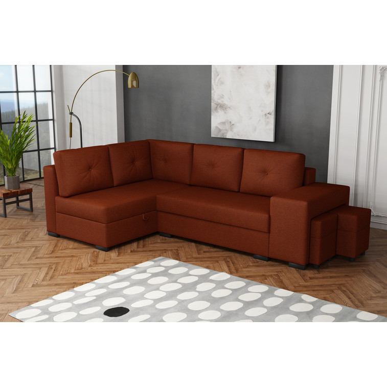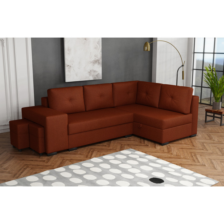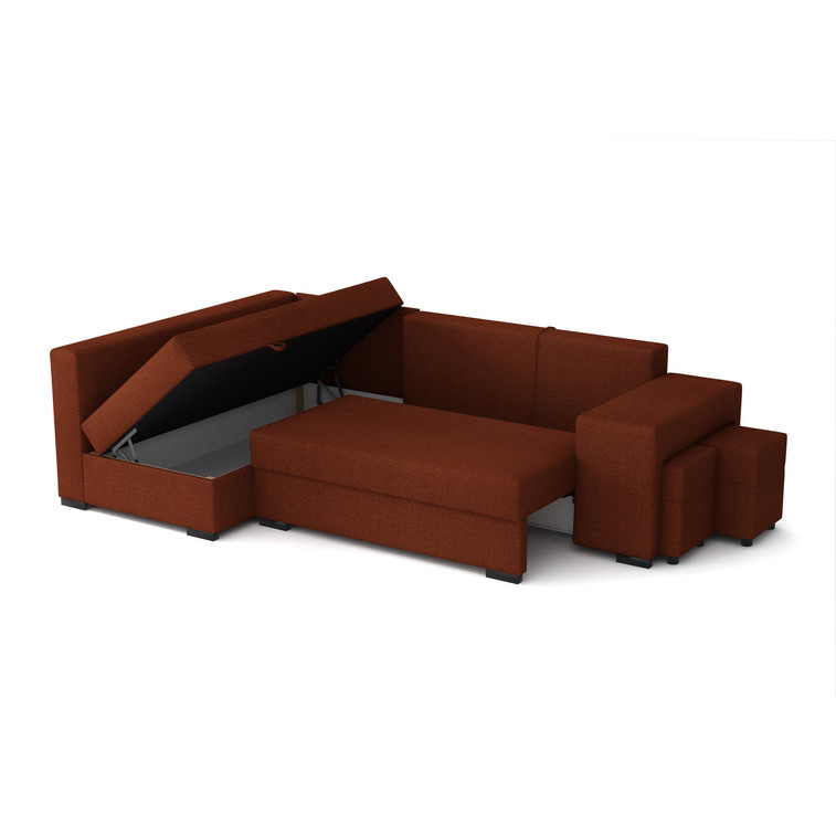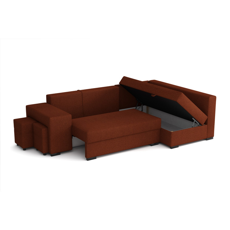 Rohová rozkládací sedací souprava HAPPY I s taburety.