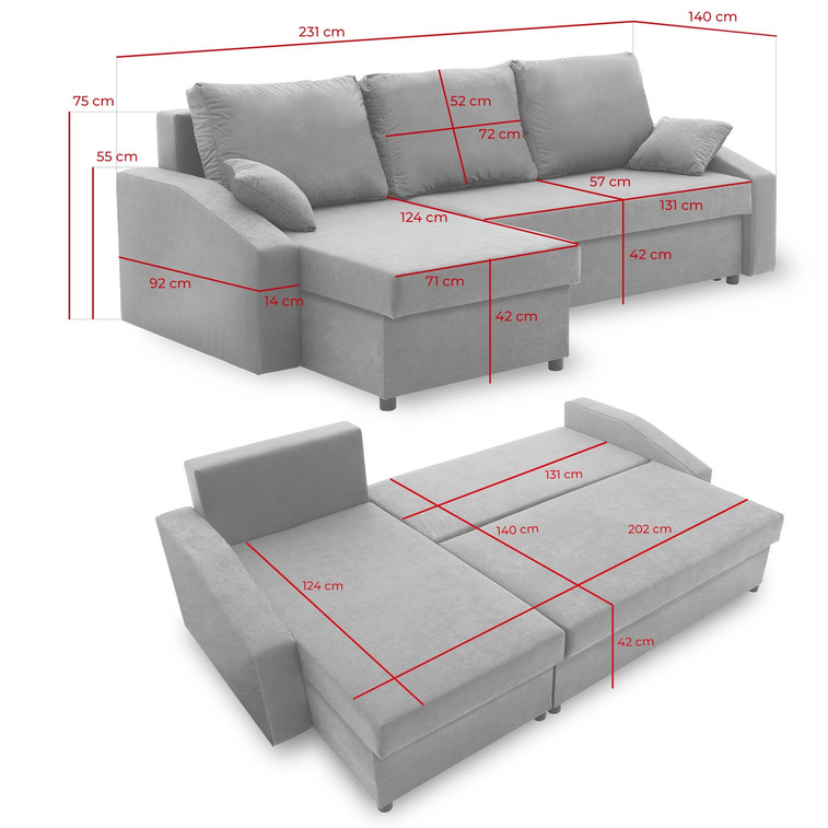 Pevná konstrukce ze dřeva a OSB desky. Potah z kvalitní látky Mikro v mnoha moderních barevných odstínech. Snadné rozkládání sedací soupravy na lůžkovou podobu. Moderní design vhodný do všech současných interiérů.