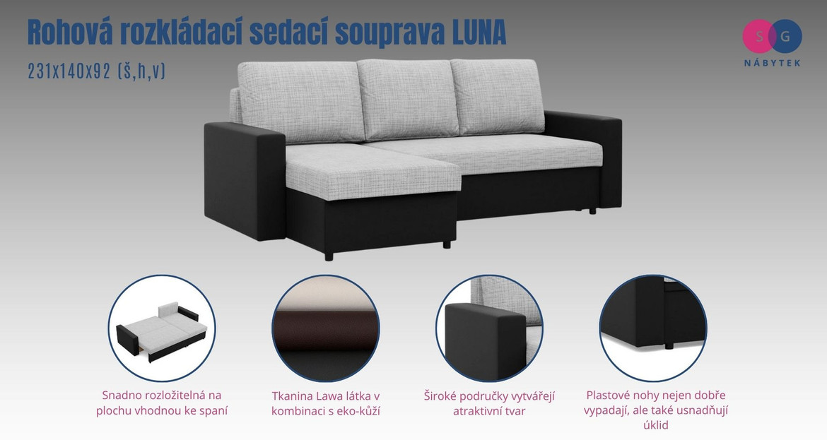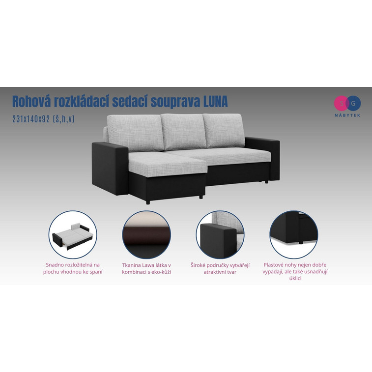 Rohová rozkládací sedací souprava LUNA.