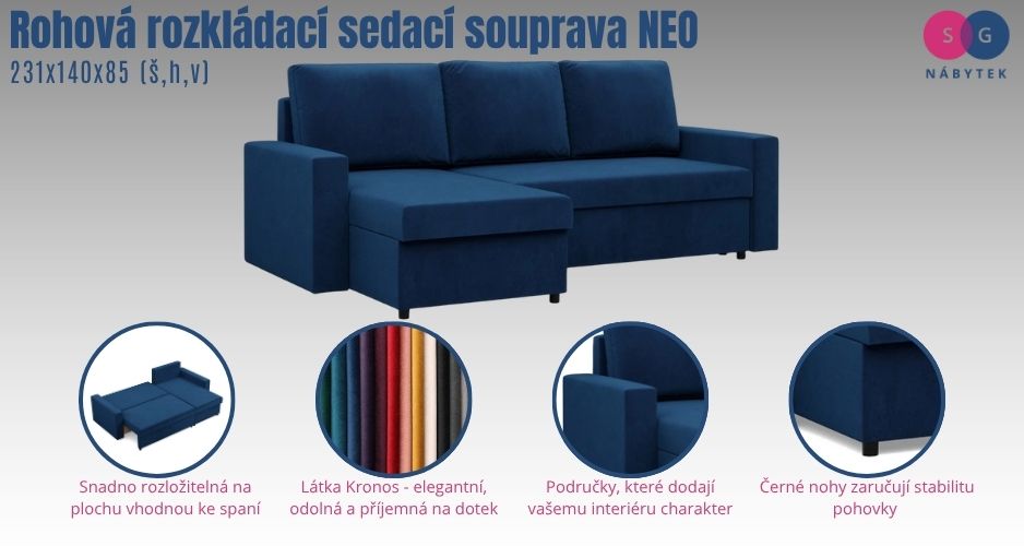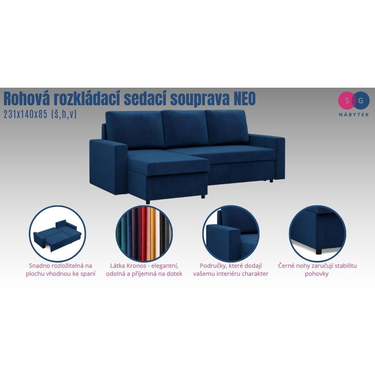 Rohová rozkládací sedací souprava NEO - rovný bok.