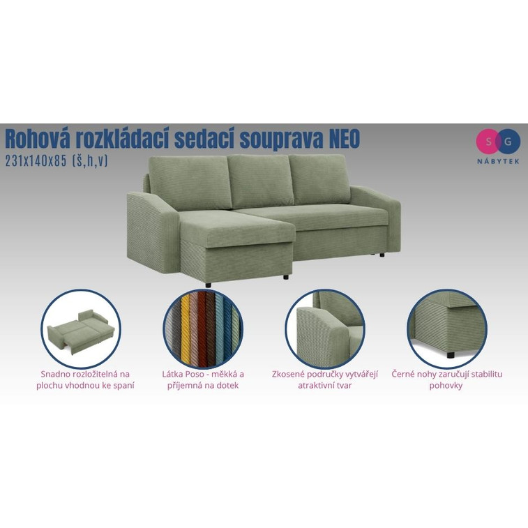 Rohová rozkládací sedací souprava NEO - zkosený bok - model 3.