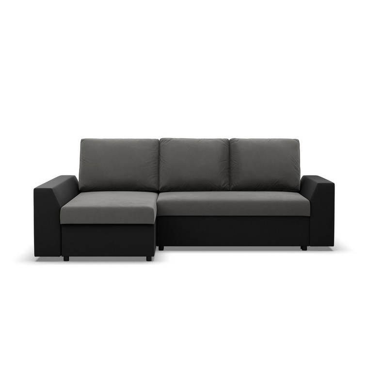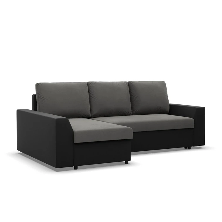 Rohová rozkládací sedací souprava PAUL látka v kombinaci s eko-kůží Levá Šedá/černá II