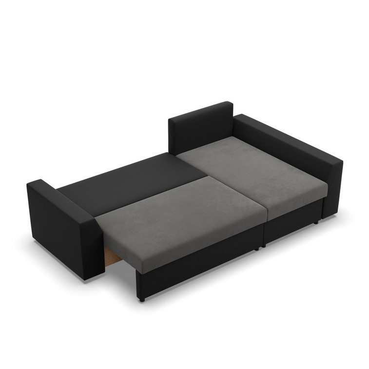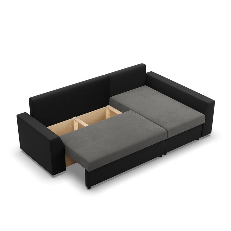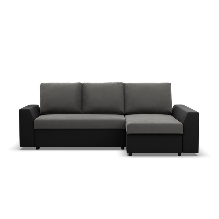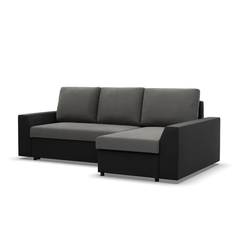 Rohová rozkládací sedací souprava PAUL látka v kombinaci s eko-kůží Pravá Šedá/černá II