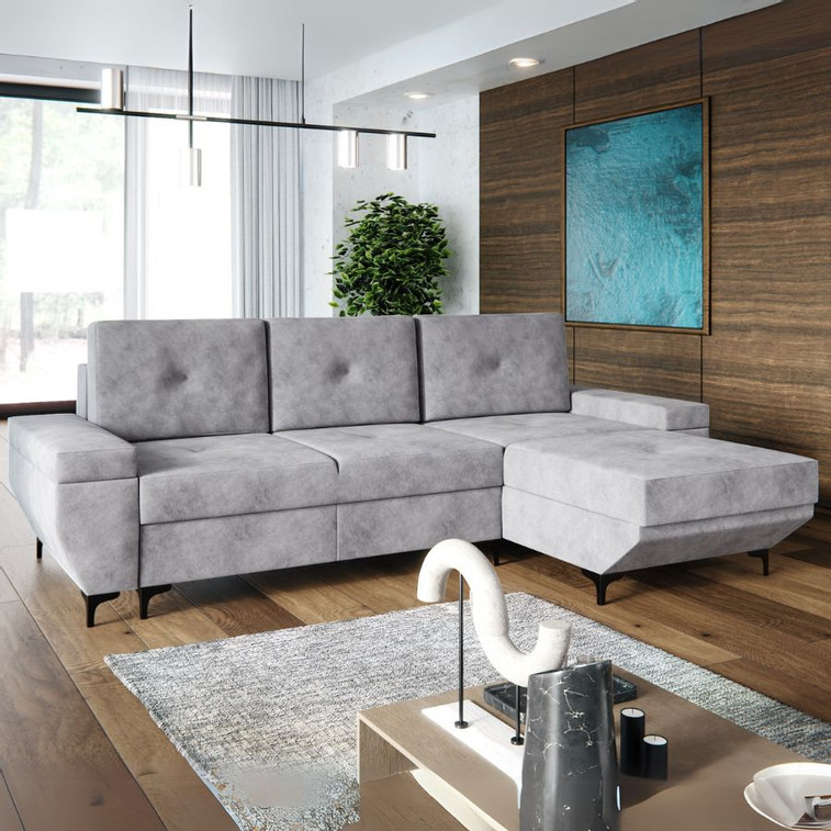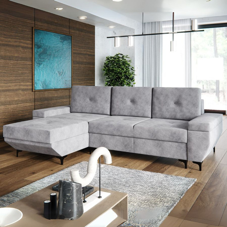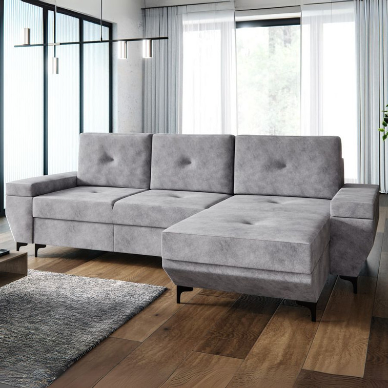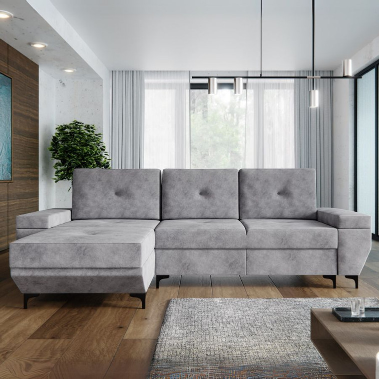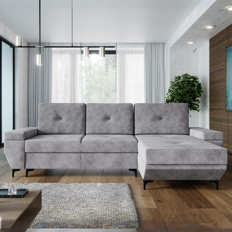 Pevná konstrukce ze dřeva a OSB desky. Potah z kvalitní látky Whisper. Při montáži možnost zvolení levé nebo pravé strany. Moderní design vhodný do všech současných interiérů.