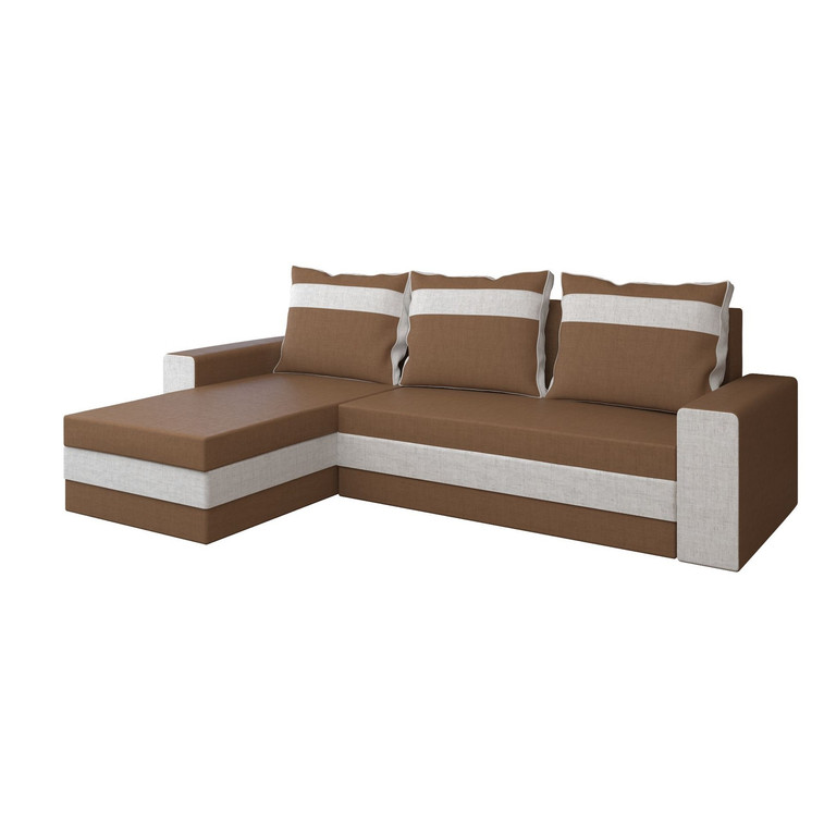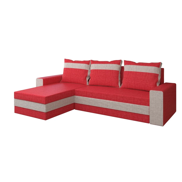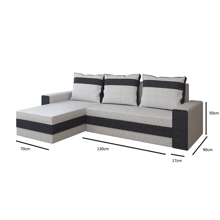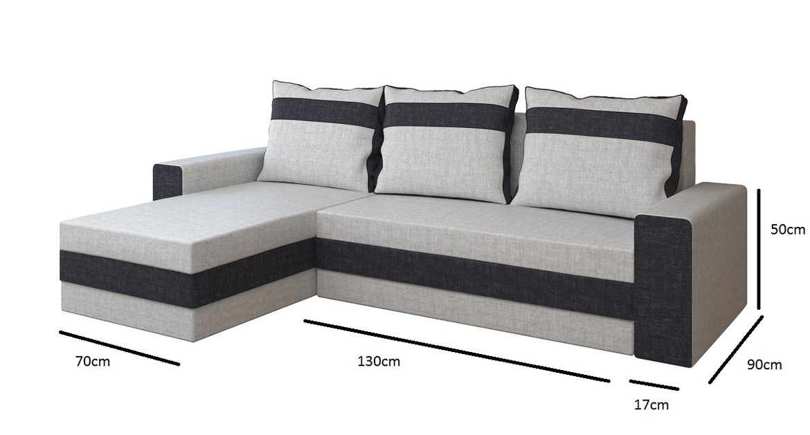 Rohová rozkládací sedací souprava POLO. Pevná konstrukce ze dřeva a OSB desky. Potah z velmi kvalitní pevné, hrubé látky v moderních barevných odstínech. Strana sedací soupravy je univerzální, lze použít jako levou i pravou. Snadné rozkládání pohovky na lůžkovou podobu. Moderní Skandinávský design vhodný do všech současných interiérů.