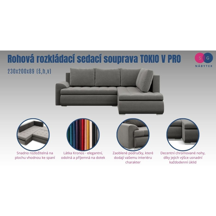 Rohová rozkládací sedací souprava TOKIO V PRO.