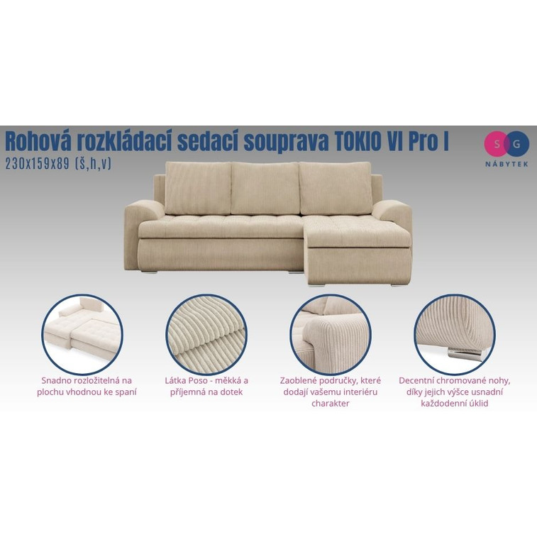 Rohová rozkládací sedací souprava TOKIO V Pro I.
