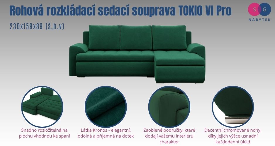 Rohová rozkládací sedací souprava TOKIO VI Pro.