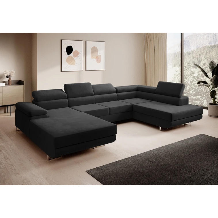 Rohová rozkládací sedací souprava U 274 MARYEN Pravá Černá II