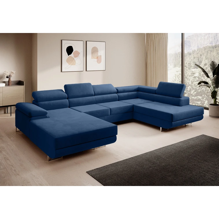 Rohová rozkládací sedací souprava U 274 MARYEN Pravá Modrá