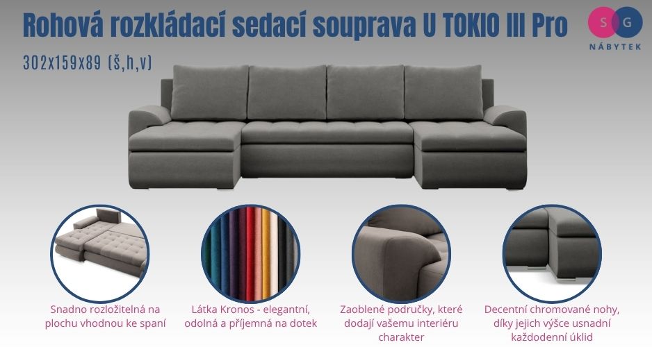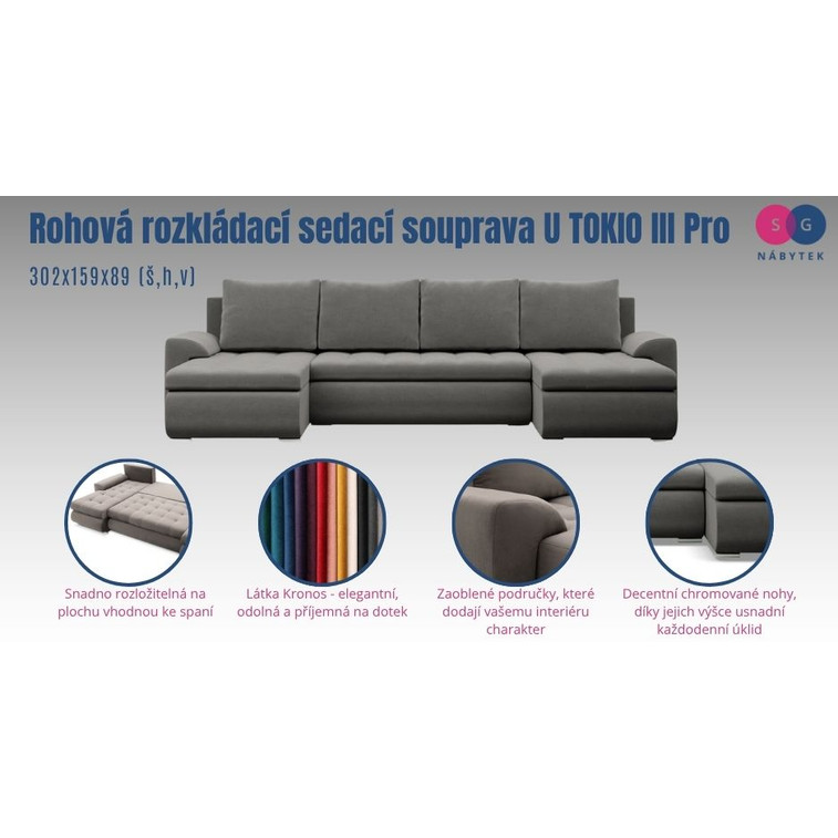 Rohová rozkládací sedací souprava U TOKIO III Pro.