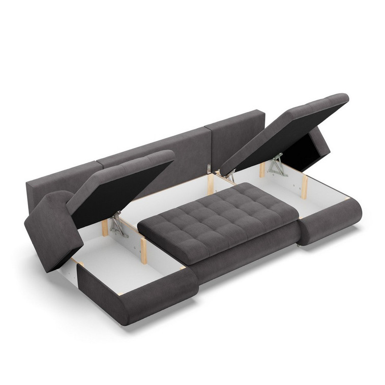 Pevná konstrukce ze dřeva a OSB desky. Potah z kvalitní tkaniny v mnoha moderních barevných odstínech. Sedací část je prošívaná. Snadné rozkládání sedací soupravy na lůžkovou podobu. Moderní design vhodný do všech současných interiérů.