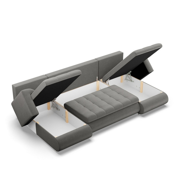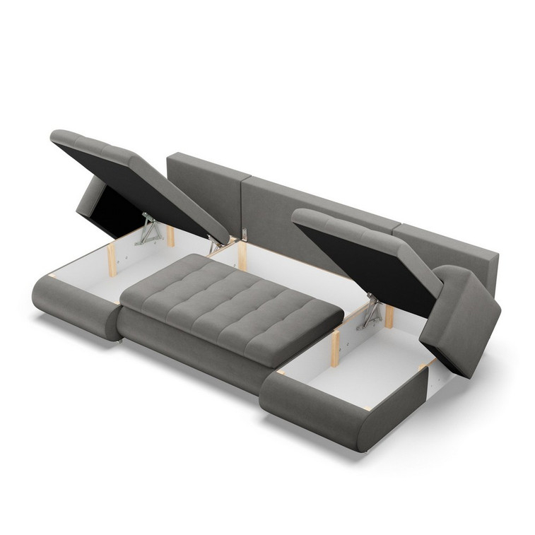 Pevná konstrukce ze dřeva a OSB desky. Potah z kvalitní tkaniny v mnoha moderních barevných odstínech. Sedací část je prošívaná. Snadné rozkládání sedací soupravy na lůžkovou podobu. Moderní design vhodný do všech současných interiérů.
