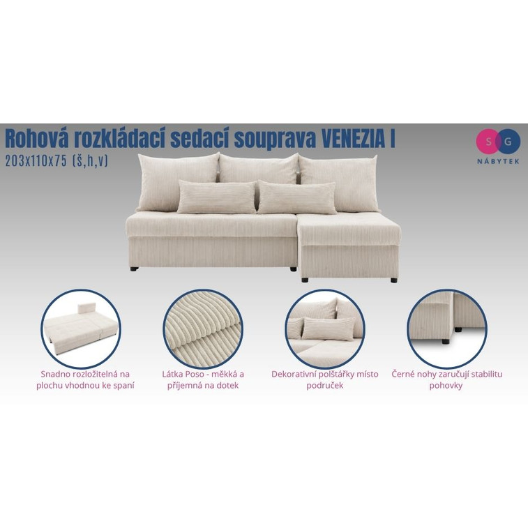 - Rohová sedací souprava Venezia je univerzálním kusem nábytku. Koupíte si kus nábytku a při první montáži se rozhodnete, jakou stranu si vyberete.