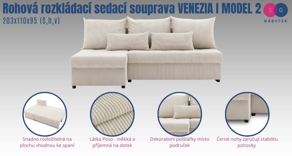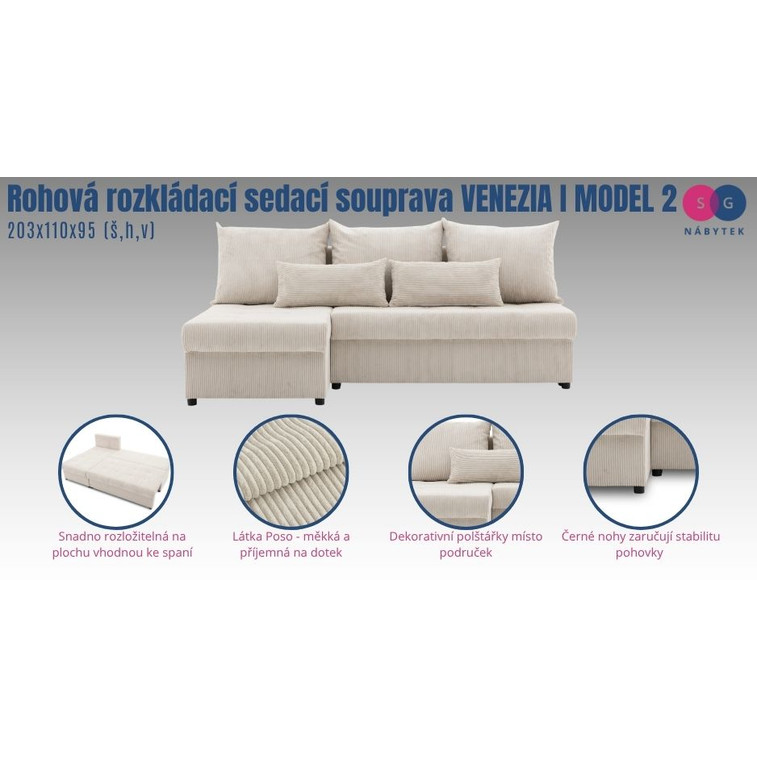 Rohová rozkládací sedací souprava VENEZIA I MODEL 2.