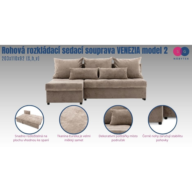 Rohová rozkládací sedací souprava VENEZIA model 2.
