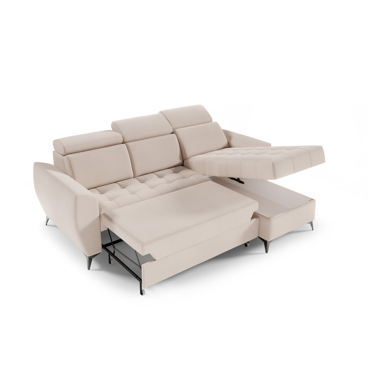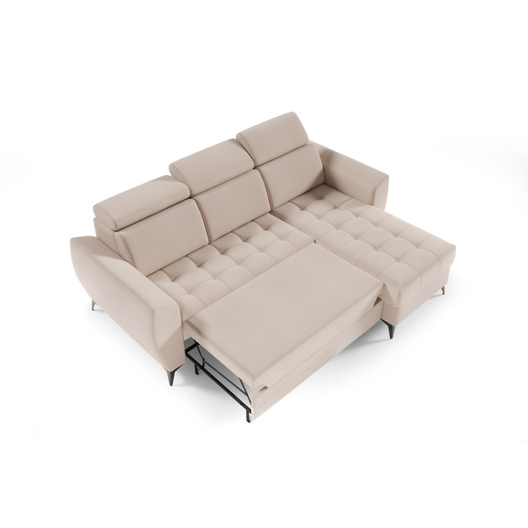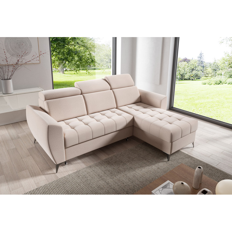 Pevná konstrukce ze dřeva a OSB desky. Potah z kvalitní látky Element v moderních barevných odstínech. Snadné rozkládání pohovky na lůžkovou podobu. Moderní skandinávský design vhodný do všech současných interiérů. Součástí pohovky je úložný prostor.