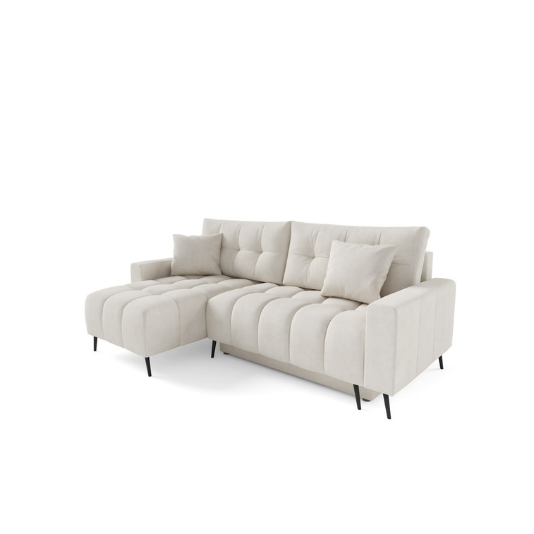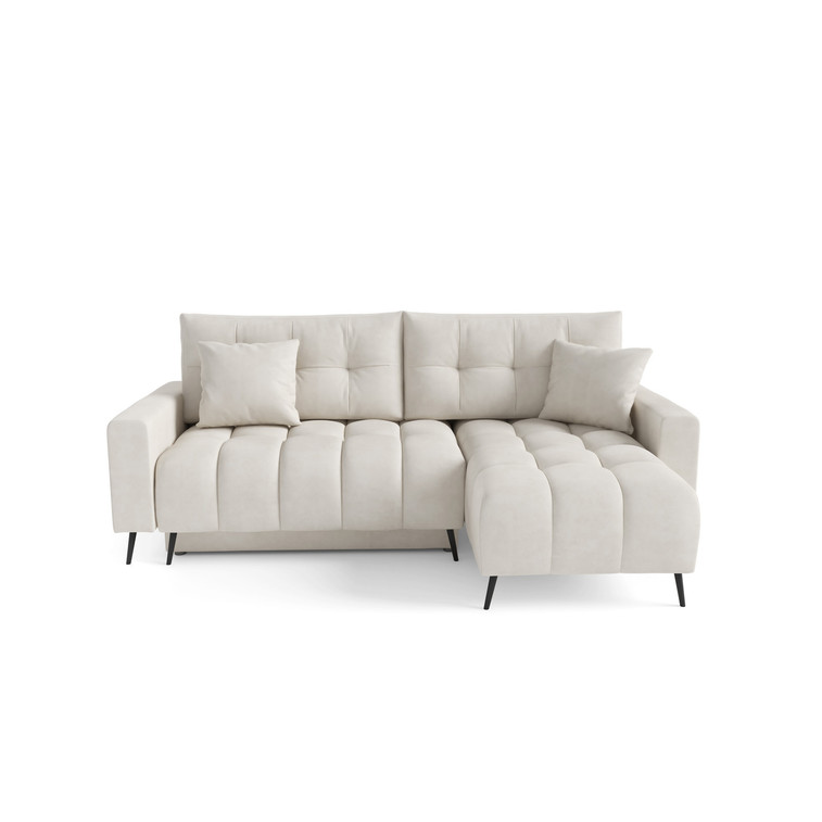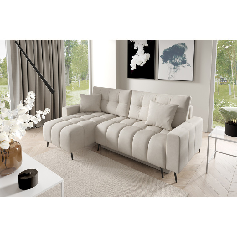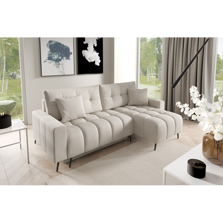 Pevná konstrukce ze dřeva a OSB desky. Potah z kvalitní látky Element v moderních barevných odstínech. Snadné rozkládání pohovky na lůžkovou podobu. Moderní skandinávský design vhodný do všech současných interiérů. Součástí pohovky je úložný prostor.