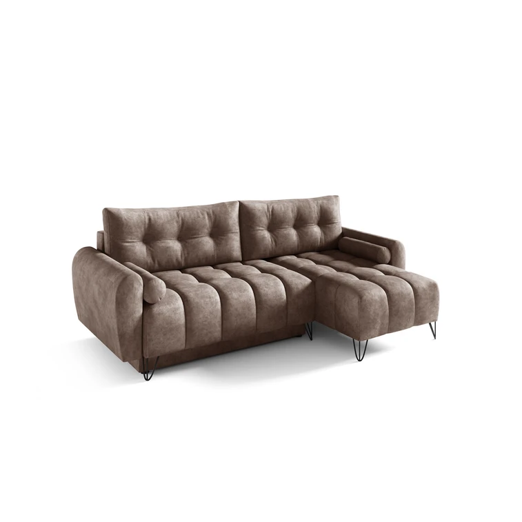 Pevná konstrukce ze dřeva a OSB desky. Potah z kvalitní látky Goya v moderních barevných odstínech. Snadné rozkládání pohovky na lůžkovou podobu. Moderní skandinávský design vhodný do všech současných interiérů. Součástí pohovky je úložný prostor.