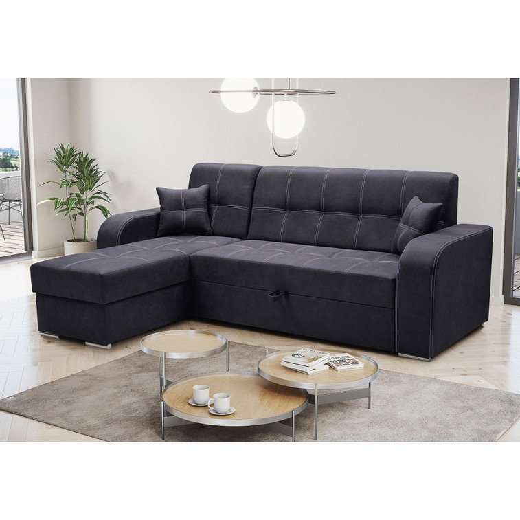 Rohová sedací souprava MISOL je klasický model, který poskytuje pohodlí jak při sezení, tak i na občasné přespaní. Na sedací soupravě jsou  malé dekorační polštářky. Souprava je zdobena módním prošíváním. Pro zvýšení estetiky a funkčnosti je zadní část rohové pohovky potažena látkou.