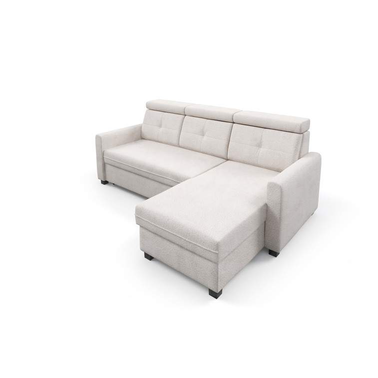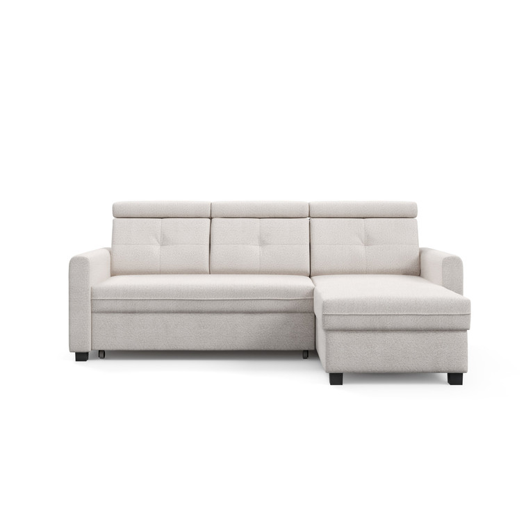 Pevná konstrukce ze dřeva a OSB desky. Potah z kvalitní látky Element v moderních barevných odstínech. Snadné rozkládání pohovky na lůžkovou podobu. Moderní skandinávský design vhodný do všech současných interiérů. Součástí pohovky je úložný prostor.