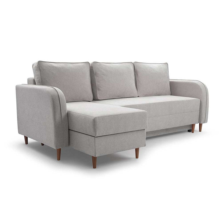 Rohová sedací souprava RIO je dostupná v zajímavých barvách a dřevěné nohy odkazují na skandinávský styl. Opěradlo je vyplněno měkkými polštářky, které zajišťují pohodlí při používání. Boky jsou mírně zaoblené. Zadní strana je potažena materiálem ladícím s barvou celku.
