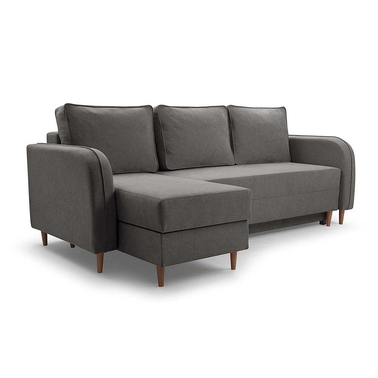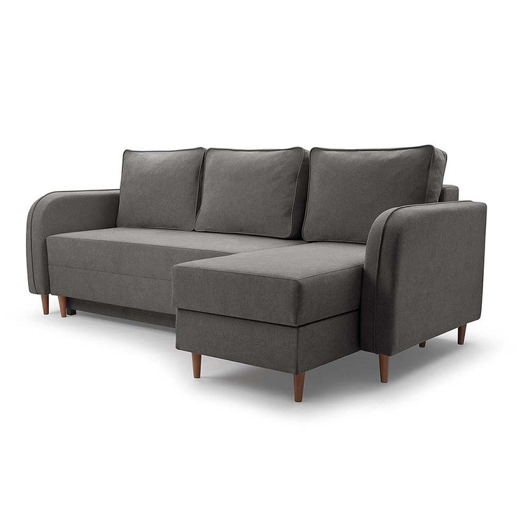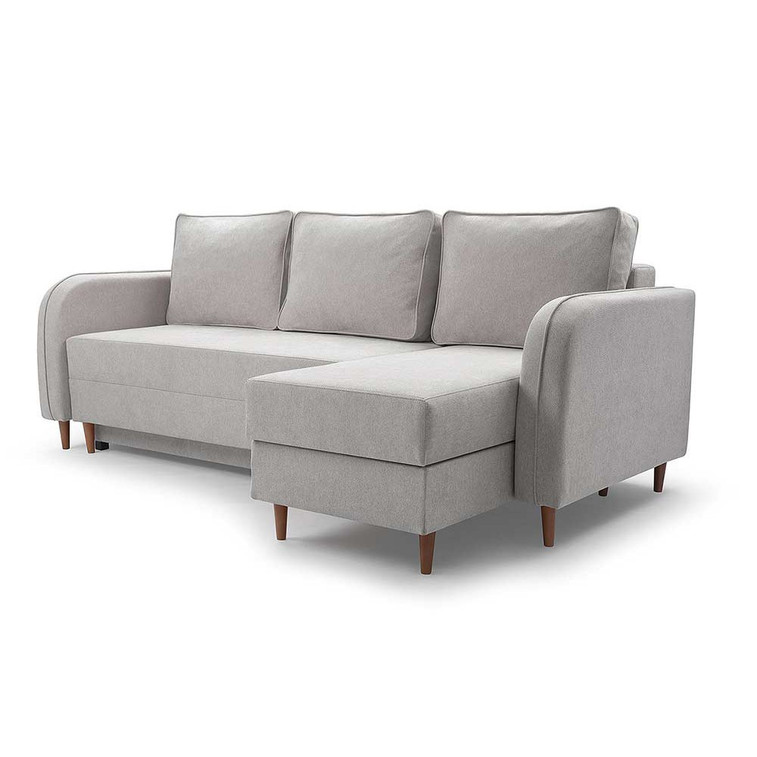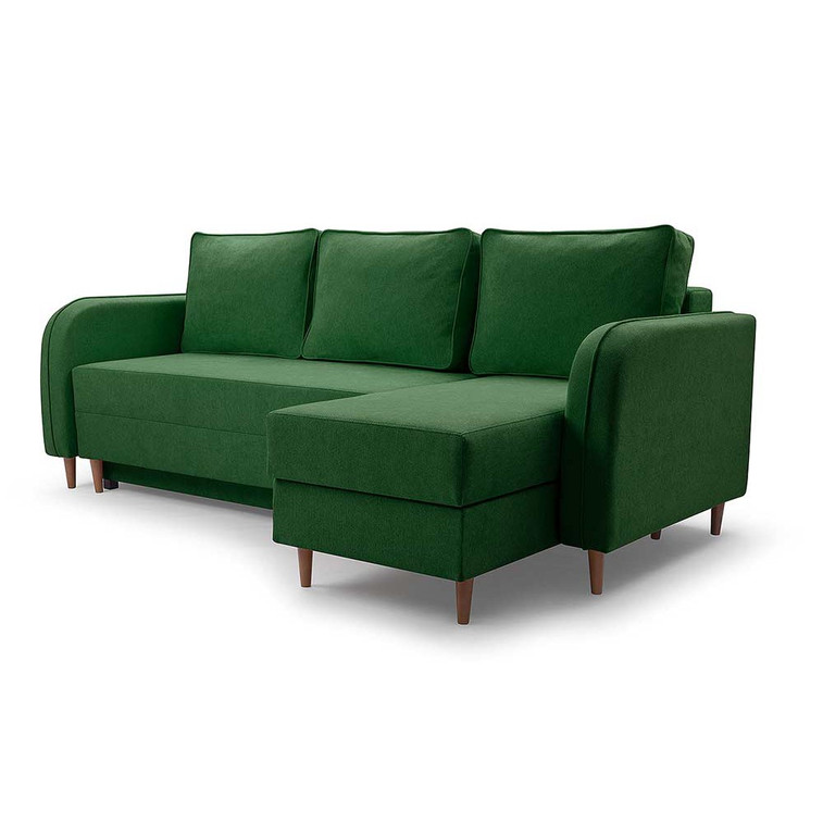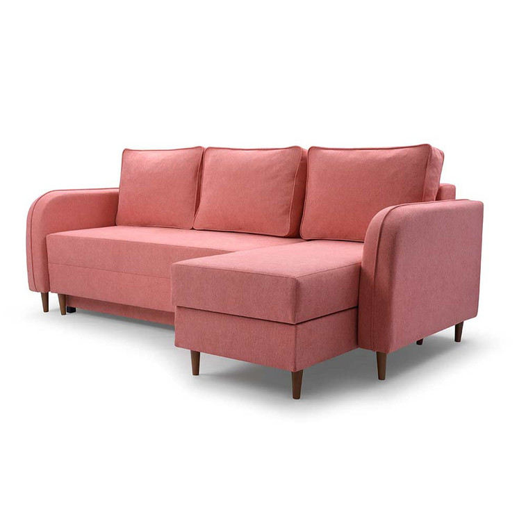 Rohová sedací souprava RIO je dostupná v zajímavých barvách a dřevěné nohy odkazují na skandinávský styl. Opěradlo je vyplněno měkkými polštářky, které zajišťují pohodlí při používání. Boky jsou mírně zaoblené. Zadní strana je potažena materiálem ladícím s barvou celku.