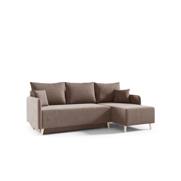 Pevná konstrukce ze dřeva a OSB desky. Potah z kvalitní látky Kronos v moderních barevných odstínech. Snadné rozkládání pohovky na lůžkovou podobu. Moderní skandinávský design vhodný do všech současných interiérů. Součástí pohovky je úložný prostor.